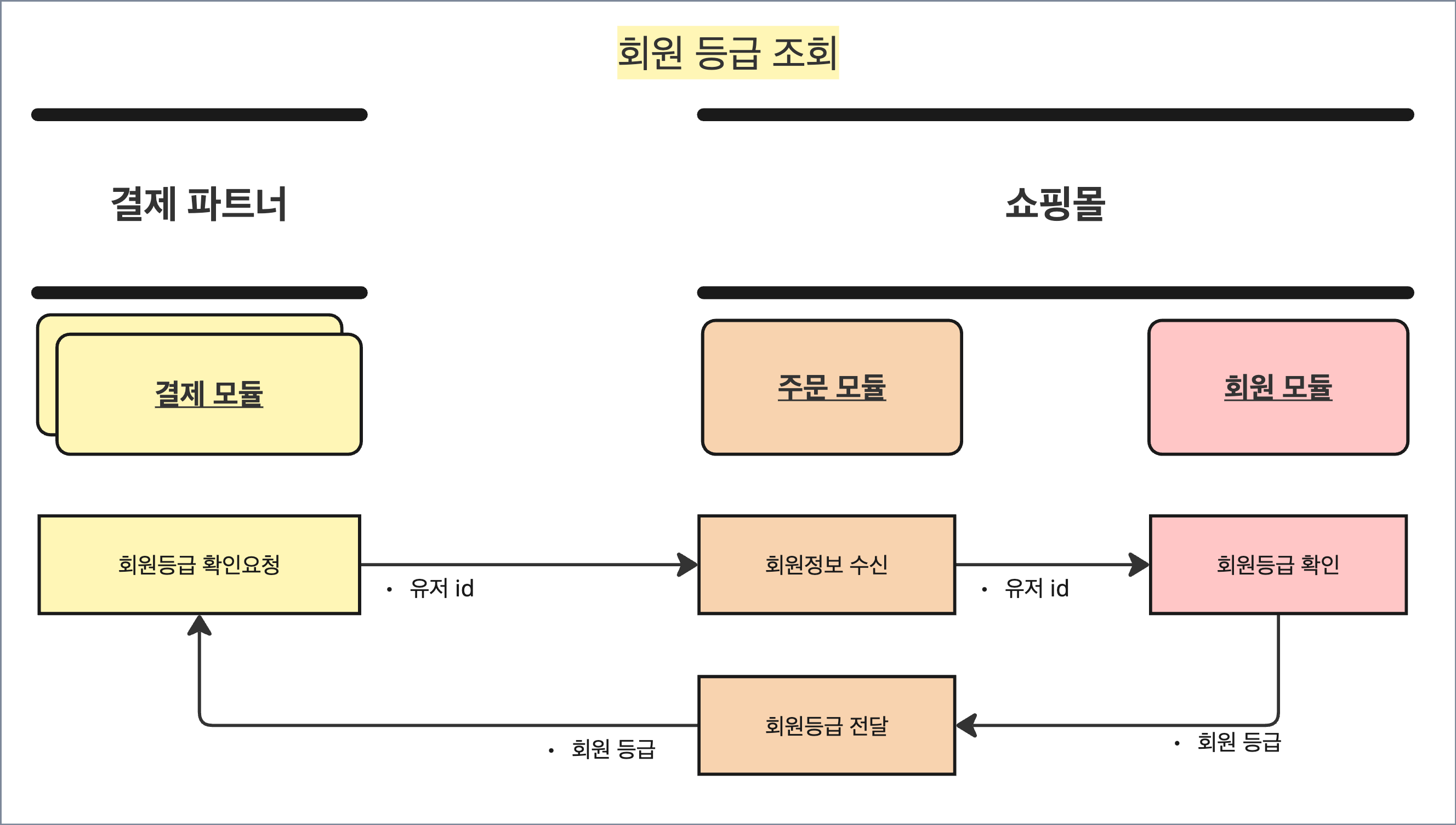 - 결제 모듈 → (유저 ID) → 주문 관리 모듈