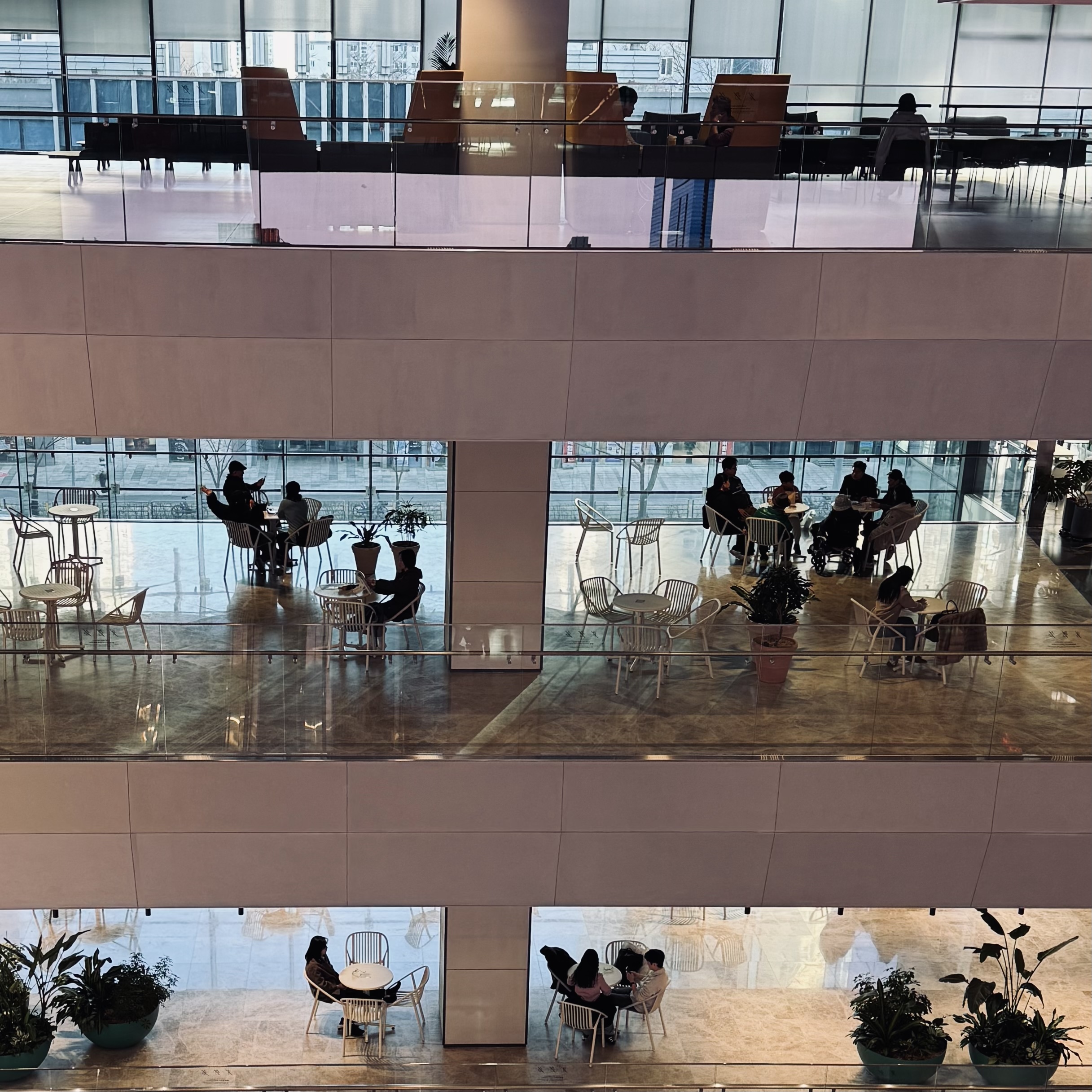 Fortunately, there is a building I love near my house. It has plenty of chairs and tables on each of the lower floors, making it a place where anyone can sit and rest comfortably. I eat lunch boxes, play board games, and study there with my friends. In those moments, I feel as if my home has expanded significantly. I hope more of these spaces will be created everywhere.
