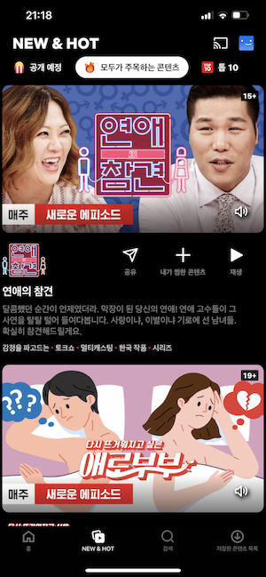 NEW & HOT에 "모두가 주목하는 콘텐츠"가 추가되었습니다.