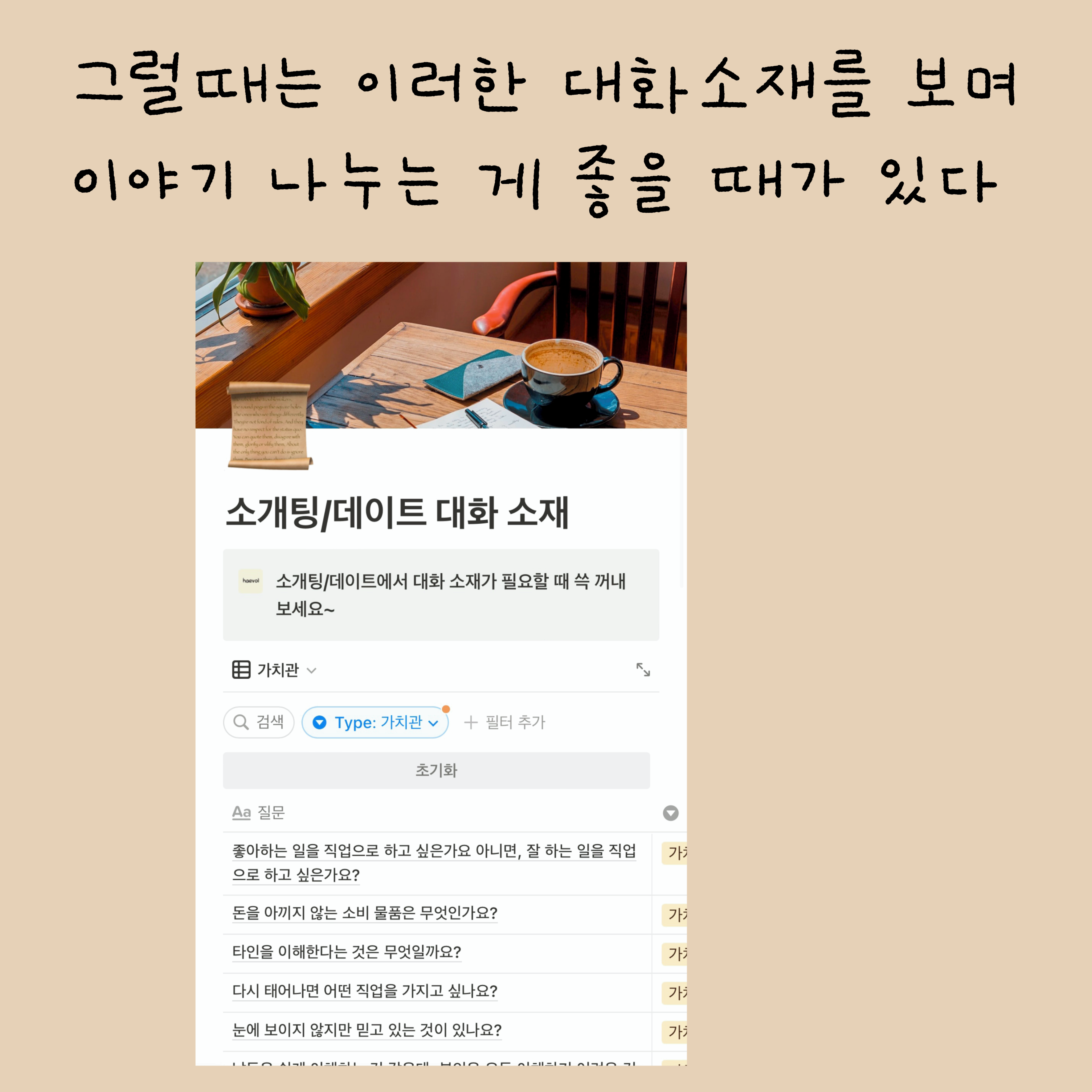 소개팅/데이트에서 대화 소재가 필요할 때 쓱 꺼내보세요~