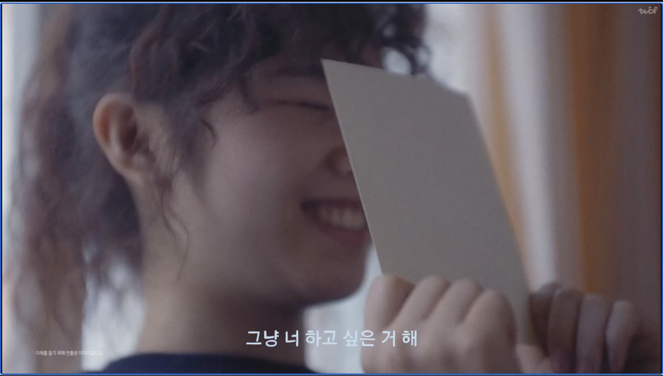 자막도 갤럭시탭 펜으로 쓴 것처럼 귀엽고 살짝 삐뚤하다. 이렇게 제품의 기능적 요소를 자연스럽게 광고에 넣으면 제품이 광고에 스며드는 것 같다. 나아가 제품이 대중들 마음속에도 스며드는 것 같다.